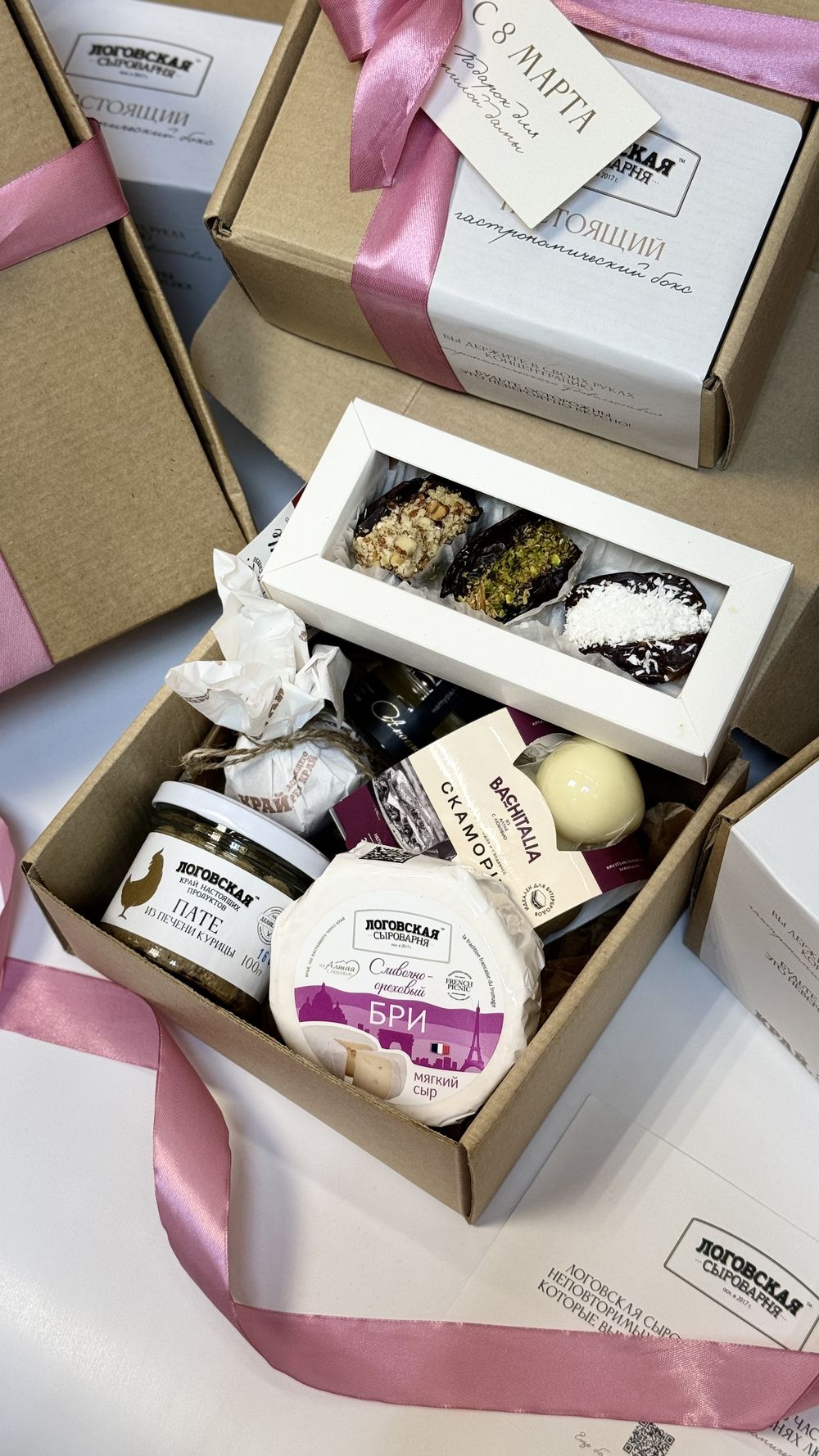 Гастрономический подарок - идеально для начинающих гурманов - Сыр Бри - Сыр Скаморца - Сыр Белпер Кнолле паприка - Ассорти королевских фиников - Пате в ассортименте - Мёд
